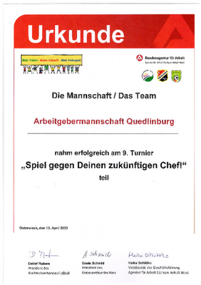 Für unser Unternehmen ging unser Mitarbeiter Martin Weiss mit der Arbeitgebermannschaft Quedlinburg als Torhüter an den Start.