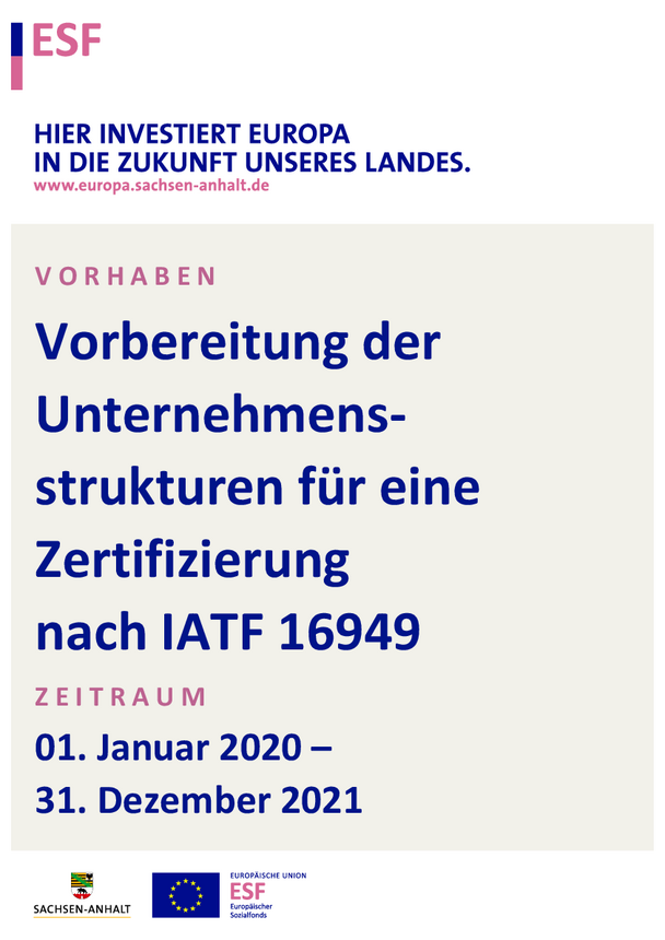 Die Firmengruppe RUNDFUNK GERNRODE investiert in die Vorbereitung einer IATF-Zertifizierung. Das Projekt startet am 01. Januar 2020 und wird bis zum 31. Januar 2022 realisiert sein.